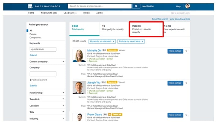 We also like to take that list and filter it by “Posted on LinkedIn recently”