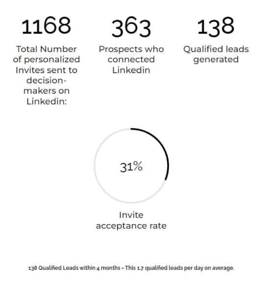On average we are seeing positive reply rates on LinkedIn of 39%, which gives us 1 positive sales lead per day.